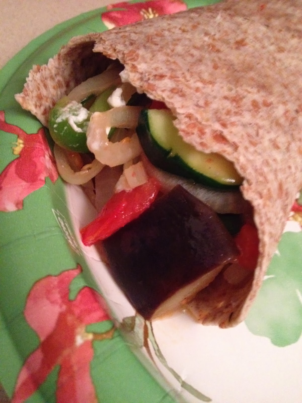 4. Serve the Ratatouille with crumbled goat cheese in a bowl and some crusty bread or folded-up in a warmed wrap.